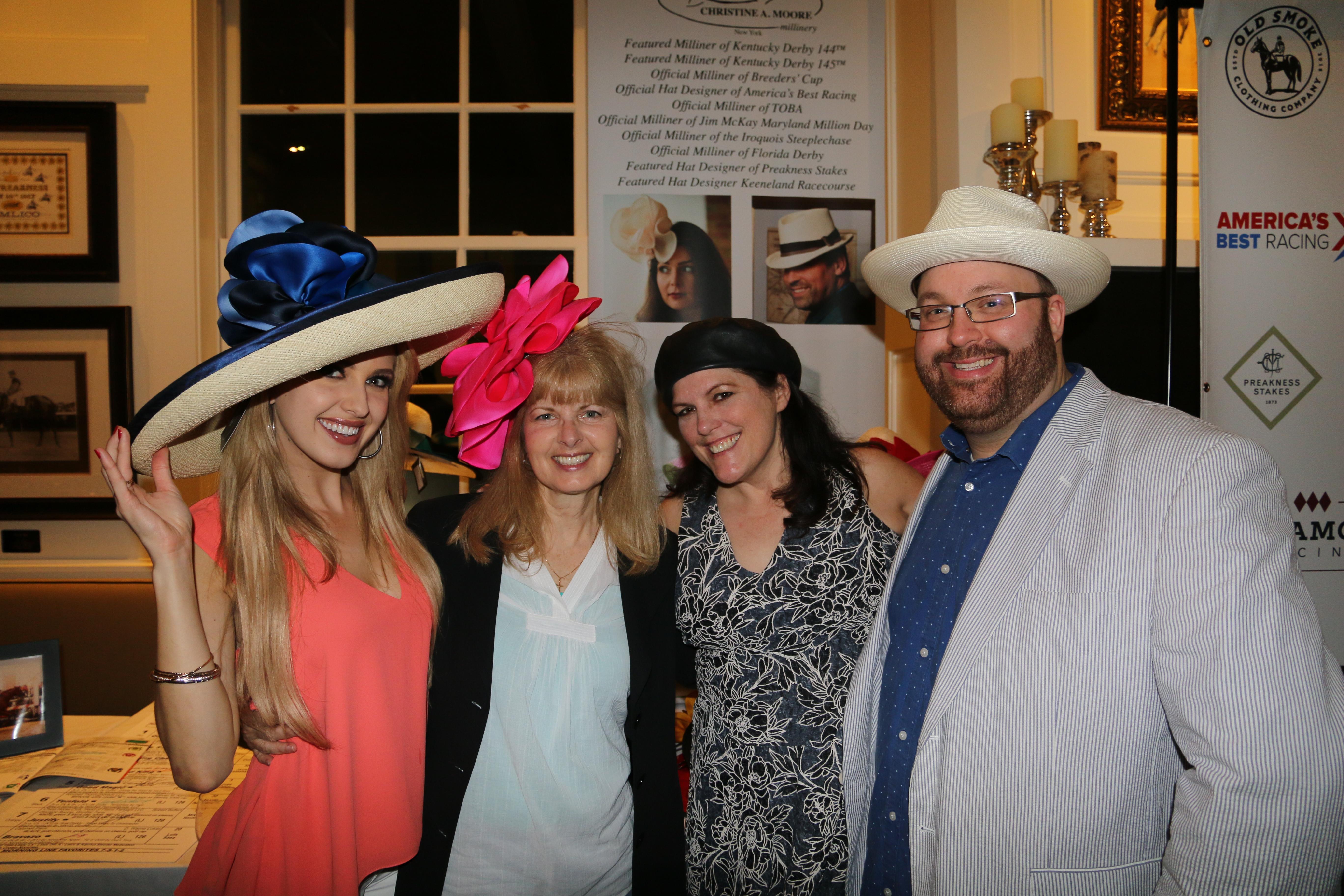 Racing analyst Acacia Courtney, Sherrie Courtney, milliner Christine A. Moore and Keith Pfeffer