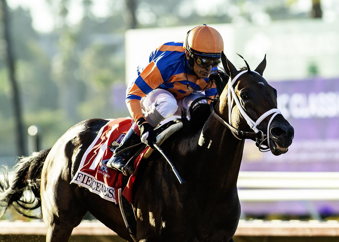 Analysis: Antiquarian comes into the Longines Classic in career-best form, having tallied his three highest Equibase Speed Figures in his three most recent starts. In his final prep, he won a loaded edition of the 1 ¼-mile Jockey Club Gold Cup Stakes Aug. 31 at Saratoga that was unfortunately marred by a near-disastrous spill soon after the start when a chain reaction of veering in and bumping caused Mindframe to unseat jockey Irad Ortiz Jr. Antiquarian broke to the outside of the offending horse, Phileas Fogg, and largely escaped the trouble. He stalked Phileas Fogg’s pace, took over entering the stretch, and held off a rallying Sierra Leone for a signature 1 ½-length victory. Sierra Leone, Highland Falls, and of course Mindframe were all affected by the incident early in the race and are back to run in the Classic, and their presence plus that of Sovereignty, Journalism, and Baeza should boost Antiquarian’s post-time odds to the 15-1 range, making him an appealing horse to use in exotic bets such as the exacta and trifecta. This classy, stamina-bred, and consistent racehorse has reached a new level in 2025, and he’ll have to take another step higher to post the upset. Regular rider John Velazquez will be aboard Fierceness in the Classic.