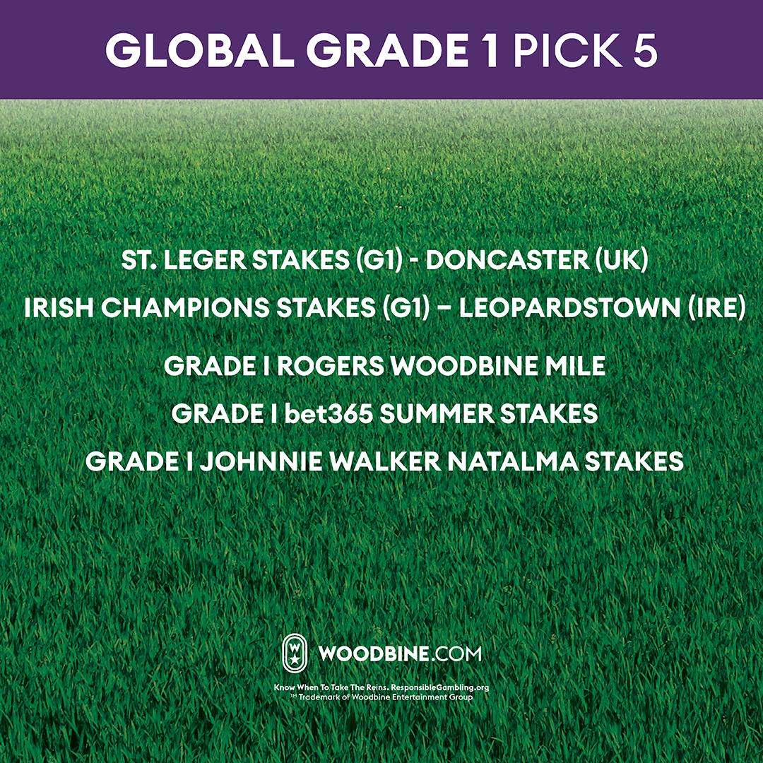 On Turf Champions Day, Woodbine will also offer a Global Pick 5 wager encompassing the three “Win and You’re In” races plus two international Group 1 races – the St. Leger Stakes at Doncaster (third jewel of the English Triple Crown) and the Royal Bahrain Irish Champion Stakes at Leopardstown (a “Win and You’re In” for the Longines Breeders’ Cup Turf).