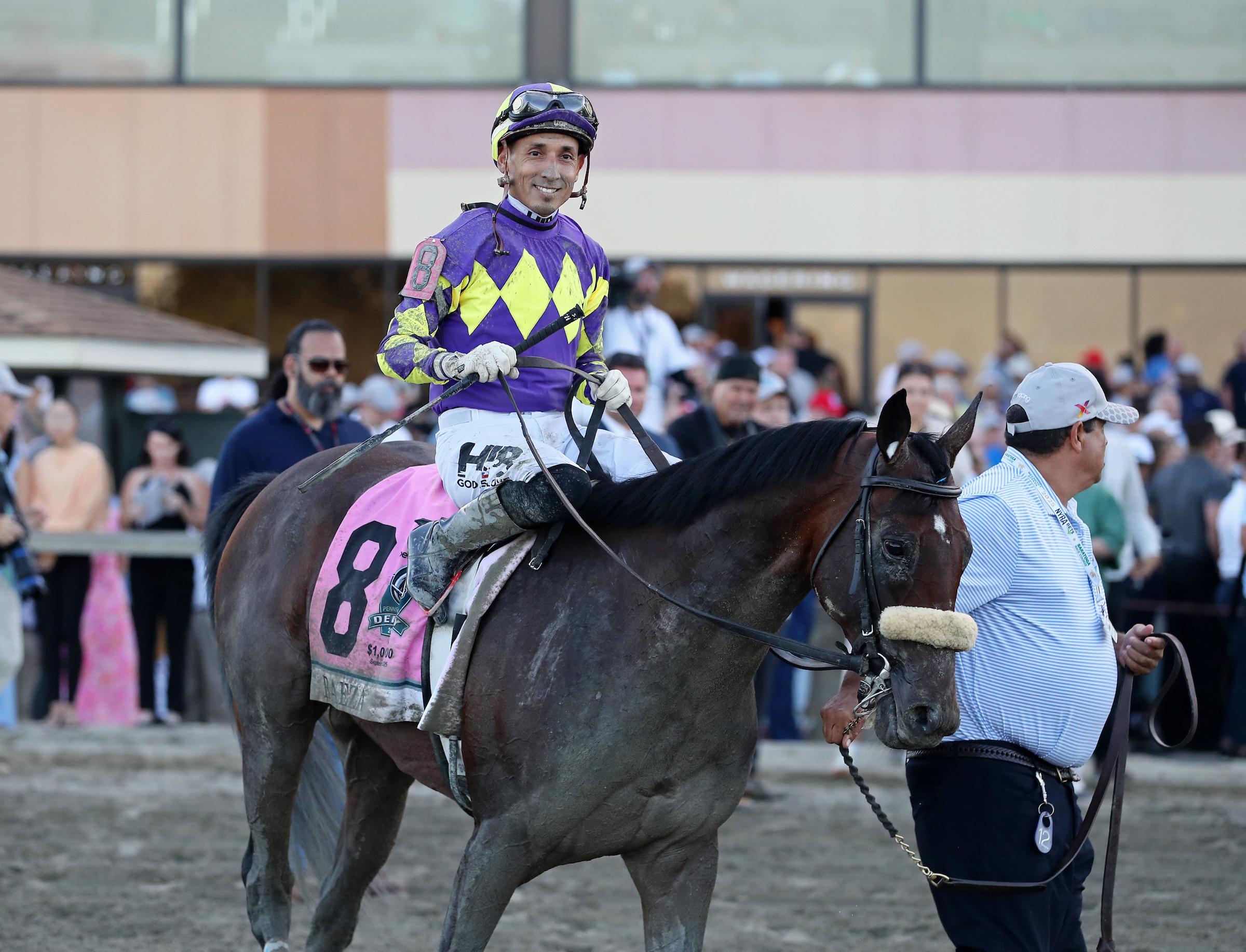 After a brief stint in the U.S. back in the early 2010s, Hector Berrios became one of the mainstays in the Southern California jockey colony after returning from his home country (where he began riding at age 17) in 2022. Nine of his 10 mounts in the World Championships have come since then, and he nearly won the Longines Breeders’ Cup Distaff in 2022 aboard longshot runner-up Blue Stripe. Berrios rode Baeza three times early in 2025, relinquished the mount to Flavien Prat for the Kentucky Derby and Belmont Stakes, and has been back aboard for the colt’s last two races, including his breakthrough stakes win in the Sept. 20 Pennsylvania Derby.