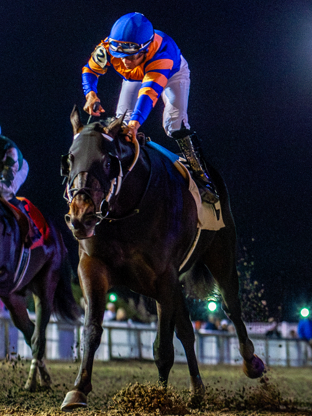 The gray or roan colt by Liam’s Map lived up to his favoritism in the $777,000 Jeff Ruby Steaks March 21 at Turfway Park, closing from ninth to earn his first stakes win after back-to-back runner-up finishes in Turfway stakes. Fulleffort won two of four races as a 2-year-old, all on the grass, but has raced exclusively on the all-weather Tapeta Footings surface at Turfway for trainer Brad Cox at age 3. A year ago, Cox ran Final Gambit three times at Turfway, also culminating with a Jeff Ruby win, before he went on to run fourth in the Kentucky Derby at 17.55-1 odds. The gameplan this year was similar with Fulleffort, and he finished the Jeff Ruby Steaks with a final eighth of a mile in :12.99 to win by 2 ½ lengths. Fulleffort earned a new career-best 99 Equibase Speed Figure, a six-point improvement, and boosted his best Beyer Speed Figure 11 points to a 94. Produced by the multiple stakes-winning Awesome Again mare Callmethesqueeze, Fulleffort is a half-brother to Power Squeeze, winner of the 1 ¼-mile, Grade 1 Alabama Stakes on the dirt in 2024. Having never competed in a race on the dirt, Fulleffort is a wild card for the 2026 Kentucky Derby … but he’ll be in the starting gate and should be doing his best running late.