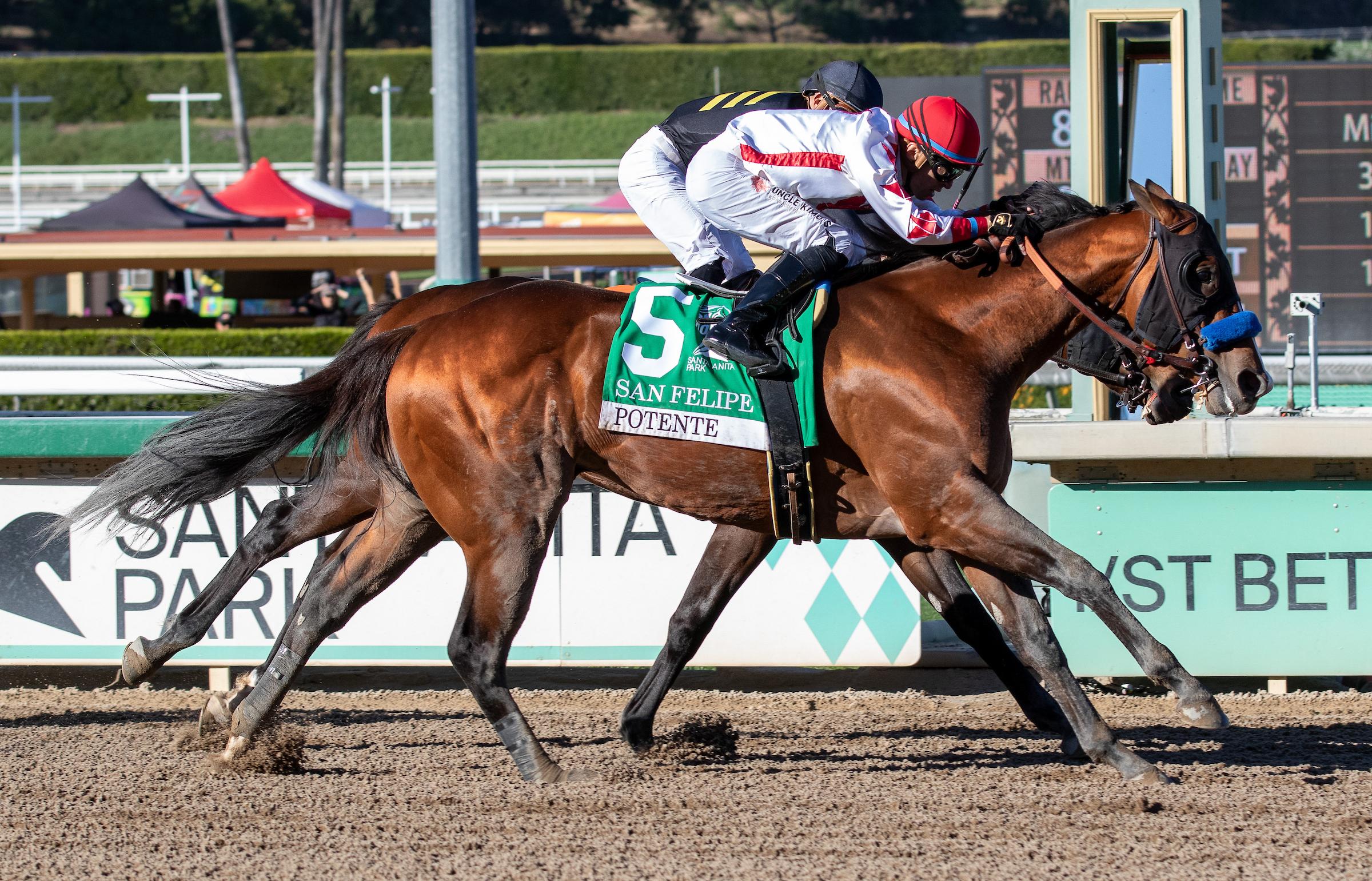 Notable achievements and interesting facts: Potente has an unblemished 2-for-2 record to begin his career, including his January maiden win at Santa Anita and a victory last time in his stakes debut when he caught Robusta at the finish line to win Santa Anita’s Grade 2 San Felipe Stakes Presented by DK Horse by a head. He needed every bit of the 1 1/16-mile distance of the San Felipe to catch Robusta but certainly stands to improve further in what will be only his third lifetime start, and he will benefit from the experience gained from that stakes victory over this racetrack with some extra distance to work with. Bob Baffert’s success in this race is noted above, with eight official wins. Jockey Juan Hedrnandez has never won the Santa Anita Derby, but he generally rides first call for the Baffert barn and the jockey/trainer combination has been lethal at Santa Anita with an outstanding 43% win percentage together dating back to last year. Potente is sired by Into Mischief, North America’s leading sire seven years in a row and the sire of three Kentucky Derby winners including Authentic (2020), Mandaloun (2021), and Sovereignty last year.