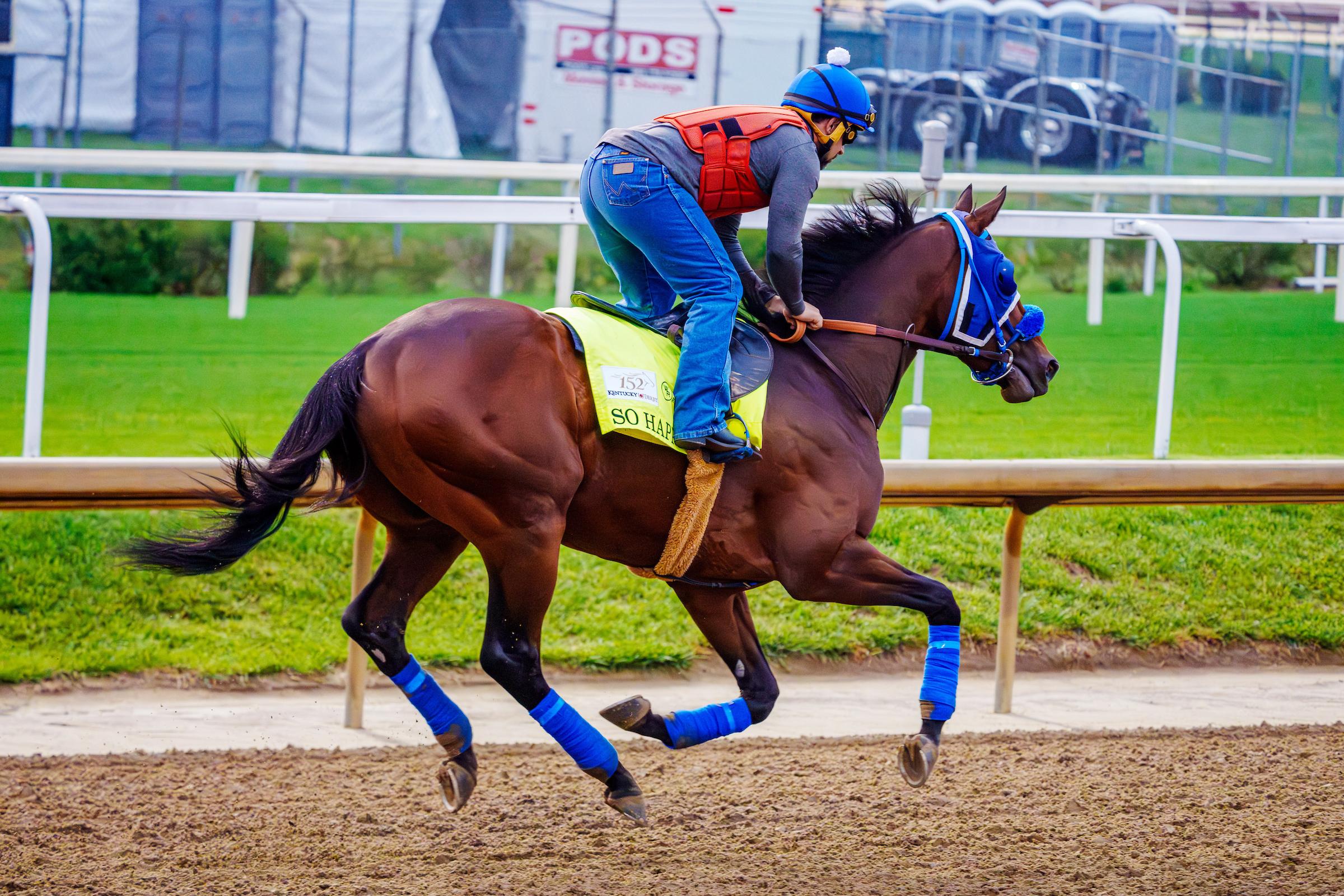 Hall of Fame jockey Mike Smith flew from California to Kentucky to work So Happy last week. While the colt’s five-furlong time at Churchill Downs April 24 was a respectable 1:00.20, he needed some hand urging from Smith through the stretch. The two-time Derby-winning jockey describes him as a horse that will only do what’s required during morning breezes. Still, he maintains a high confidence level in the Santa Anita Derby winner. “If he runs to the ability that I know that he has, he should run really well,” Smith said.