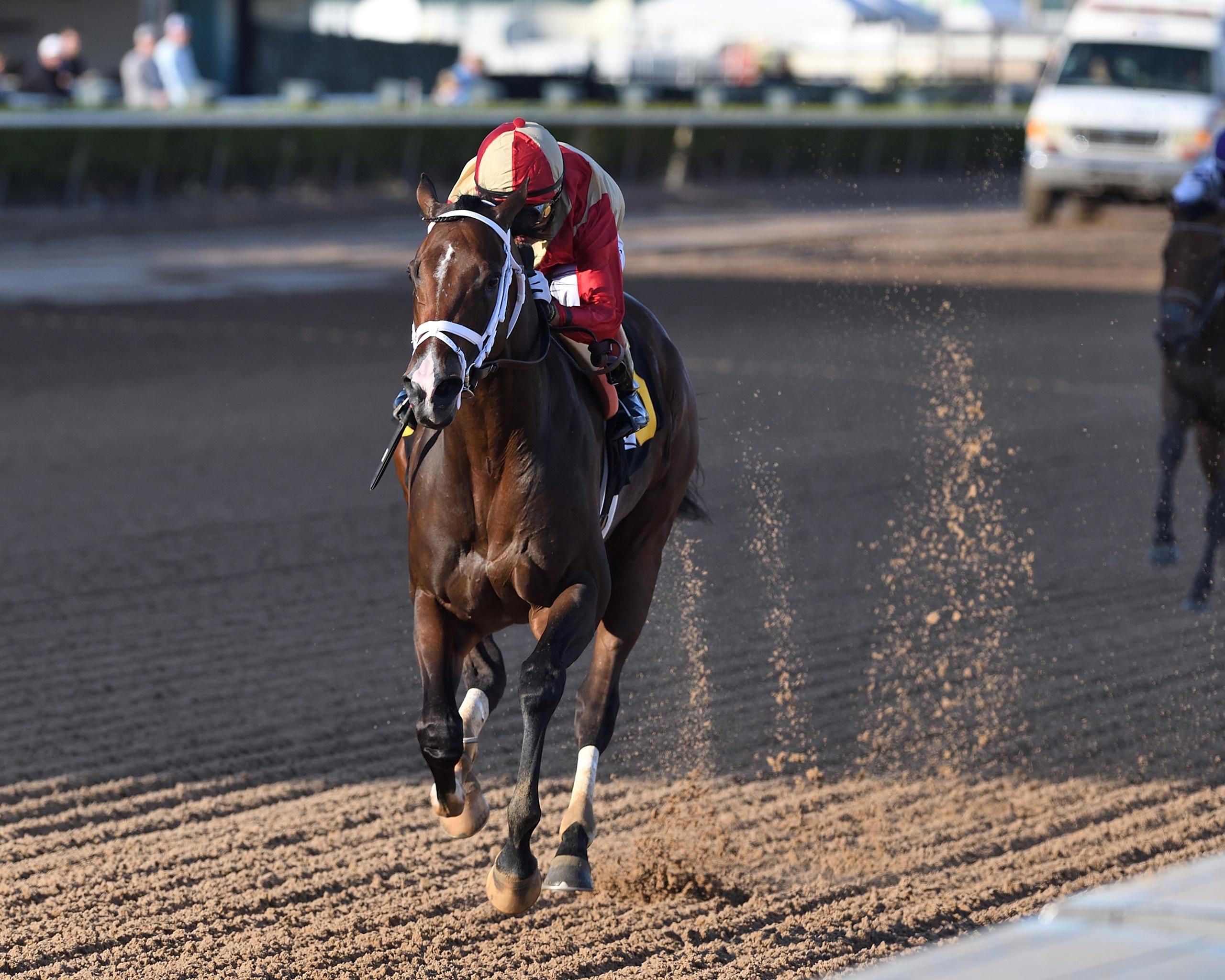 A trio of SoFla prospects: On Jan. 2, Todd Pletcher-trained Nearly turned heads with a dominant five-length win in a seven-furlong race at Gulfstream Park, easily defeating an odds-on favorite and two other opponents. That win against a small field followed a 9 ¼-length romp against fellow Florida-breds in a six-furlong Gulfstream dirt sprint in late November. This son of hot young sire Not This Time has stamina in his dam’s bloodline and should remain in open company with a two-turn test next on the agenda. He’s getting 60-1 odds at Caesars and opens Friday at 50-1 odds in Churchill’s pool.