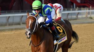 J. Kirk and Judy Robison's Jackie's Warrior shot out of the starting gate and led every step of the way in the $250,000, Grade 1 Runhappy Hopeful Stakes Sept. 7 at Saratoga Race Course.